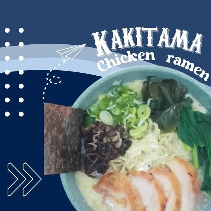 Kakitama Chicken Ramen menggunakan telur kocok yang dimasukkan ke dalam kuah panas, menciptakan tekstur lembut seperti serabut telur. Topping ayam yang empuk membuat rasa ramen ini hangat, creamy, dan menenangkan.