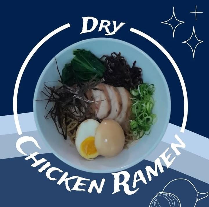Dry Chicken Ramen adalah ramen tanpa kuah yang dicampur dengan saus minyak dan bumbu khas. Topping ayam yang lembut menyatu dengan mi, memberikan rasa gurih dan aromatik di setiap suapan.
