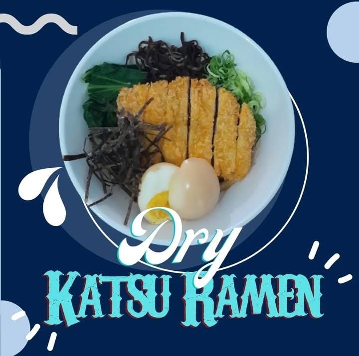 Dry Katsu Ramen adalah ramen tanpa kuah yang disajikan dengan saus minyak dan kecap khas Jepang. Topping katsu renyah dicampur dengan mi, sehingga setiap suapan terasa gurih dan sedikit pedas tanpa basah oleh kuah.