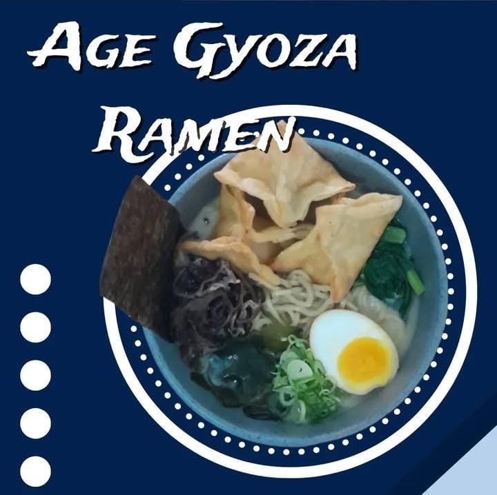 Age Gyoza Ramen adalah ramen yang diberi topping gyoza goreng sehingga menghadirkan perpaduan kuah hangat dengan gyoza renyah. Gyoza menyerap sedikit kuah namun tetap memiliki tekstur crispy yang membuatnya unik.